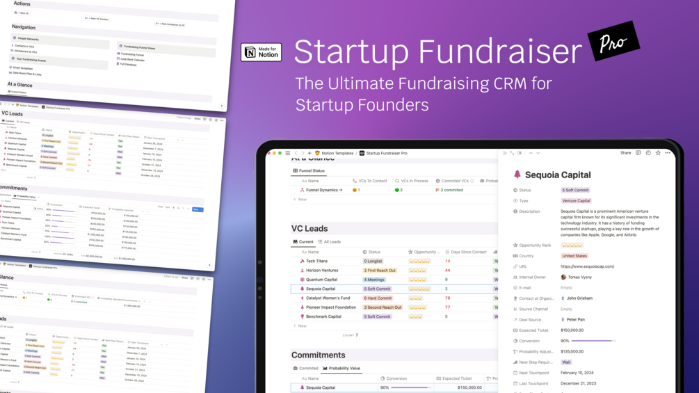 Let Startup Fundraiser Pro be your navigator. This template, drawing from my extensive fundraising experiences, is crafted with both budding and seasoned founders in mind.